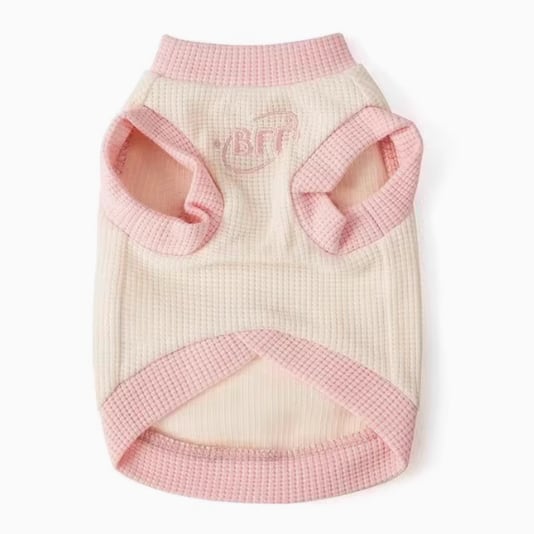 背中のワンポイントが可愛らしいデザイン。大切な愛犬をさらに魅力的に。 -size- S:着丈24cm、胸囲36cm M:着丈28cm、胸囲38cm L:着丈30cm、胸囲42cm XL:着丈34cm、胸囲48cm XXL:着丈39cm、胸囲54cm -color- blue & white pink
