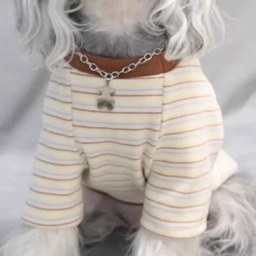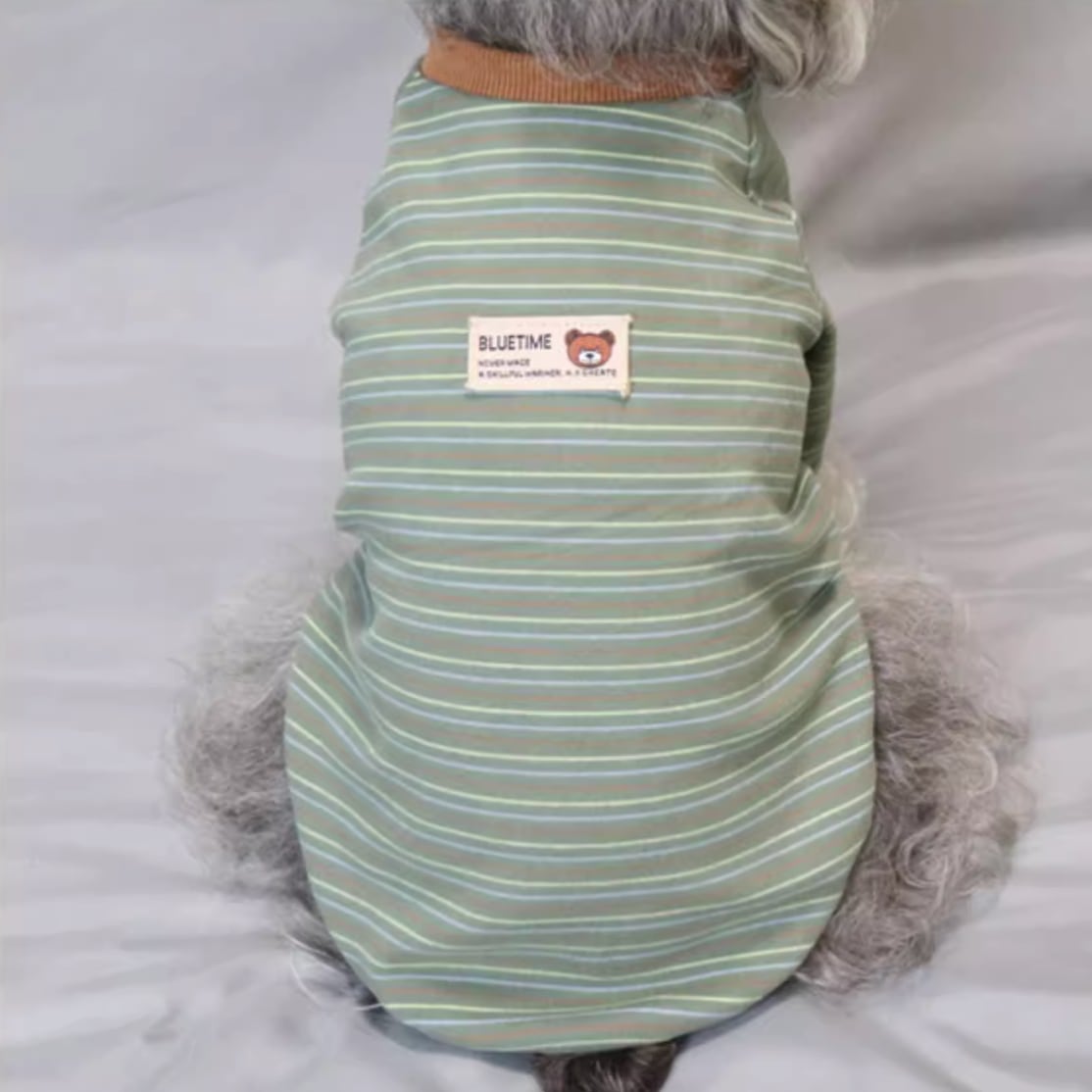 優しい色合いのストライプ柄が魅力のペットウェア。カジュアルながらもおしゃれなデザインで、お散歩やお出かけにもぴったり。 -size- XS:着丈19cm、胸囲32cm S:着丈25cm、胸囲38cm M:着丈30cm、胸囲45cm L:着丈35cm、胸囲52cm XL:着丈38cm、胸囲58cm XXL:着丈45cm、胸囲68cm 3XL:着丈52cm、胸囲78cm 4XL:着丈60cm、胸囲88cm -color- green off white