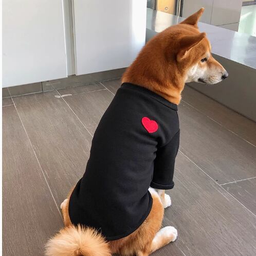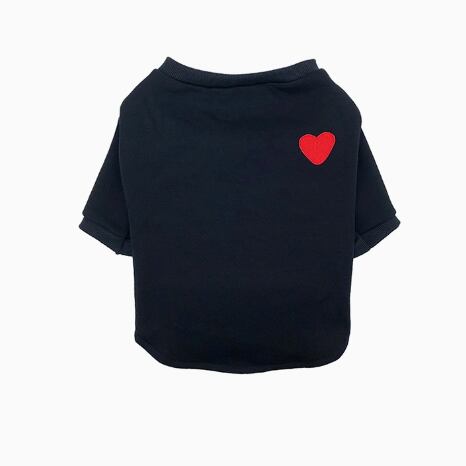 シンプルなブラックに赤いハートのワンポイントが映えるペットウェア。おしゃれで快適な一着を愛犬に。 -size- M:着丈28cm、胸囲38cm、首周り30cm L:着丈33cm、胸囲44cm、首周り36cm XL:着丈36cm、胸囲52cm、首周り40cm XXL:着丈41cm、胸囲60cm、首周り45cm 3XL:着丈45cm、胸囲66cm、首周り50cm 4XL:着丈48cm、胸囲74cm、首周り58cm -color- black