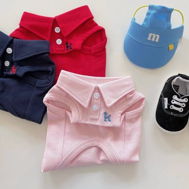 クラシックなポロシャツデザインが魅力のペットウェア。胸元のワッペンとボタンが落ち着いたおしゃれな雰囲気を演出。 -size- XS:着丈18cm、胸囲28cm S:着丈25cm、胸囲34cm M:着丈30cm、胸囲38cm L:着丈35cm、胸囲44cm XL:着丈40cm、胸囲48cm -color- pink navy red