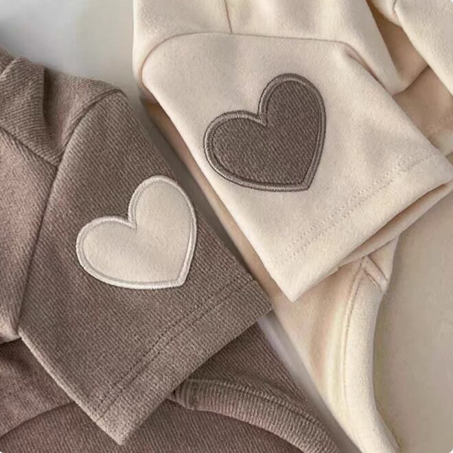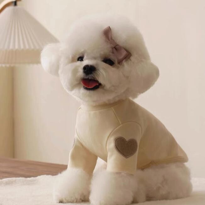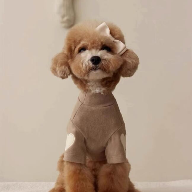 シンプルなデザインが魅力のペット用スウェット。袖部分にはハートのワッペンが施され、愛らしさをプラス。 -size- XS:着丈20cm S:着丈25cm M:着丈30cm L:着丈35cm XL:着丈40cm -color- brown beige