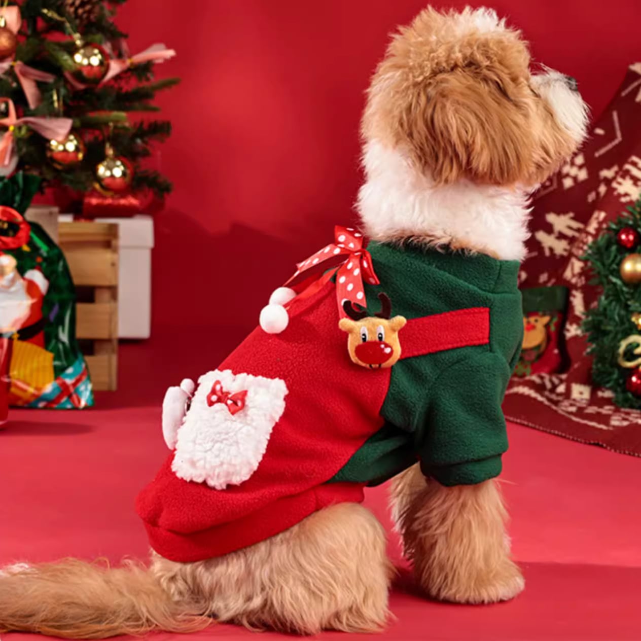 クリスマス気分を楽しめるサンタ風オーバーオール。雪だるまやリボンのデザインが、かわいらしいアクセントに。 -size- XS:着丈21cm、胸囲34cm、首周り23cm S:着丈28cm、胸囲40cm、首周り28cm M:着丈32cm、胸囲43cm、首周り31cm L:着丈34cm、胸囲50cm、首周り36cm XL:着丈41cm、胸囲57cm、首周り40cm XXL:着丈43cm、胸囲60cm、首周り40cm XXXL:着丈43cm、胸囲66cm、首周り50cm -color- Christmas red Christmas green