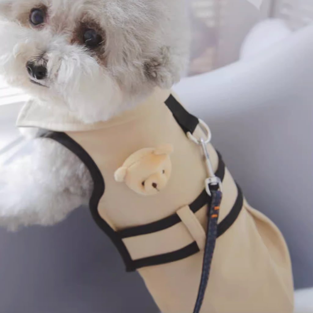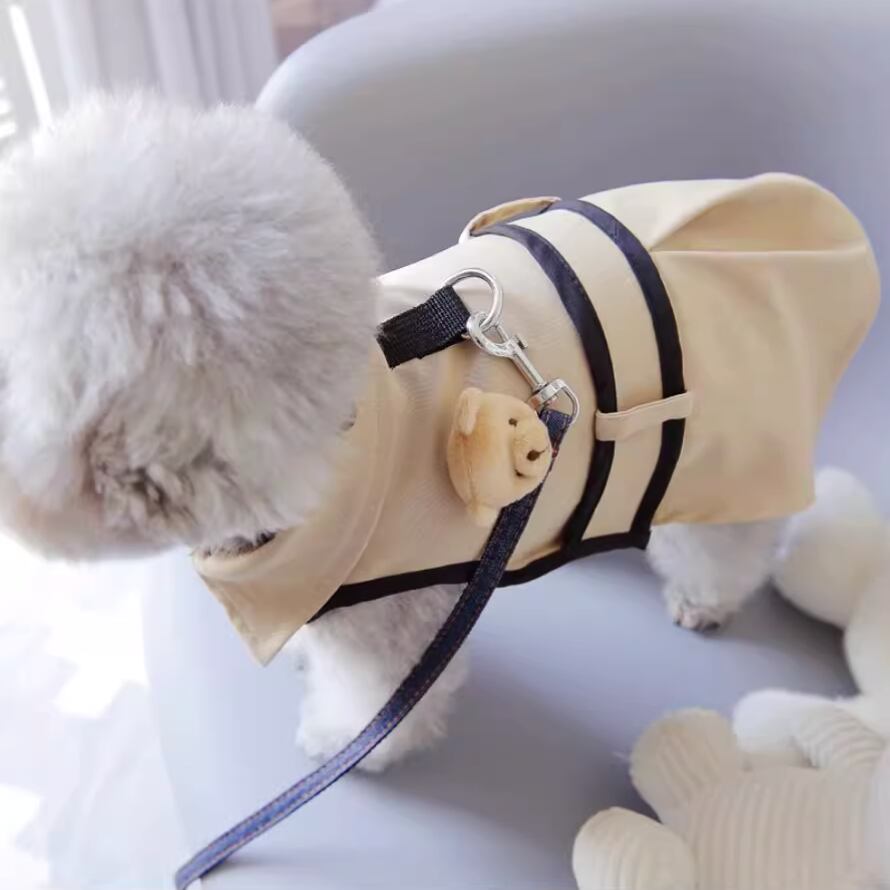 フォーマルな襟付きデザインが魅力のハーネス付きペット用シャツ。ベージュとブラックのシックなカラーが上品な雰囲気に演出。 -size- XS:背丈21cm、胸囲33cm S:背丈26cm、胸囲38cm M:背丈32cm、胸囲43cm L:背丈37cm、胸囲47cm XL:背丈41cm、胸囲52cm -color- beige