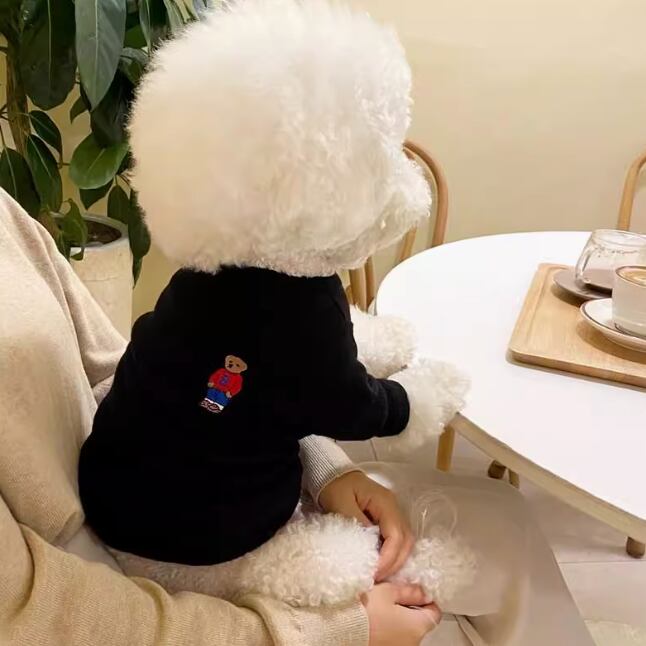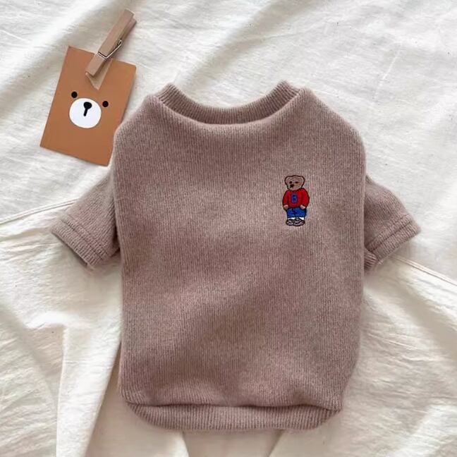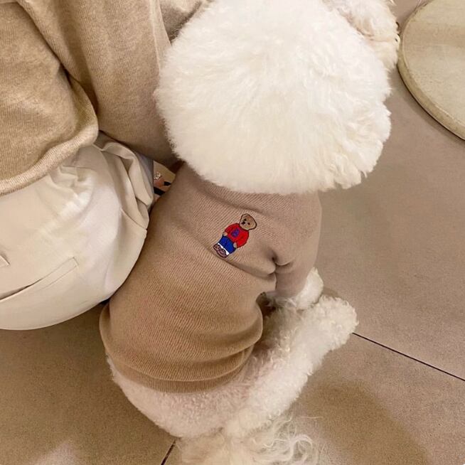 シンプルなデザインのペット用ニット。背中にはワンポイントで可愛いテディベアの刺繍が施され、落ち着いたカラーと相まってクラシックな雰囲気を演出。 -size- XS:着丈20cm、胸囲28cm S:着丈25cm、胸囲34cm M:着丈30cm、胸囲38cm L:着丈35cm、胸囲44cm XL:着丈40cm、胸囲48cm -color- brown pink black